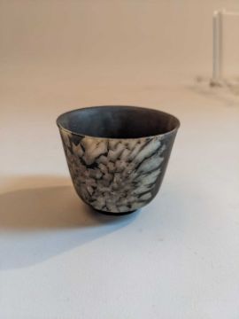 FIVE CHINESE 'CHRYSANTHEMUM STONE' SCHOLAR'S OBJECTS, comprising two brushwashers, teabowl, dish, and lingzhi shaped vase on stand (5)Provenance: private collection Cardiff