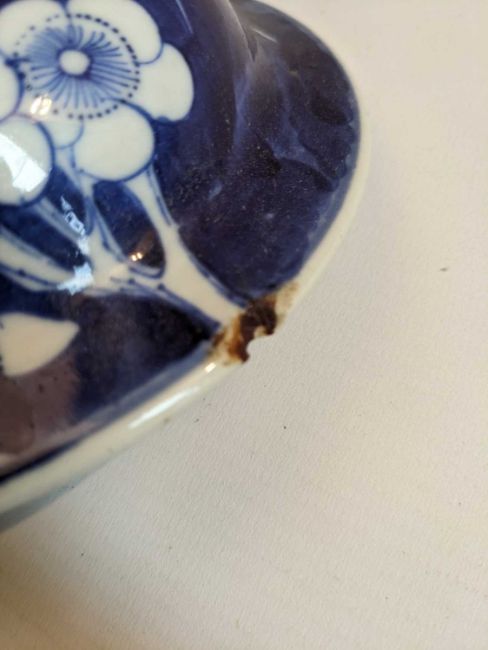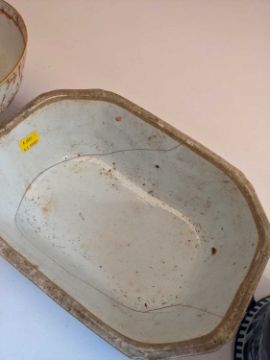 ASSORTED CHINESE PORCELAIN, 18th-20th Century, including blue and white canted rectangular tureen, blue and white chafing dish, blue and white 'prunus' jar and cover, famille rose bowl, famille verte coffee cup (5)Provenance: collection of the Late Dai Evans, former Director of Picton Castle and former curator of Petworth HouseComments: all with cracks/damage, inspection advised.