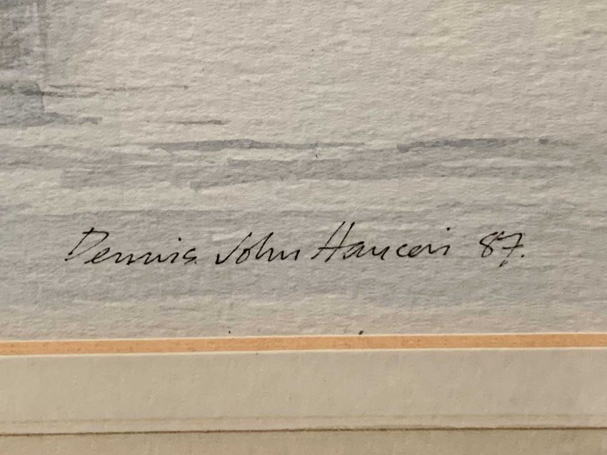 DENNIS JOHN HANCERI RSMA (1928-2011) watercolour - titled 'The Royal Ark at Greenwich, Circa 1987', signed, 29 x 47.5cms