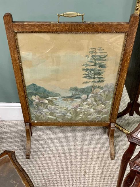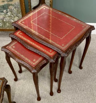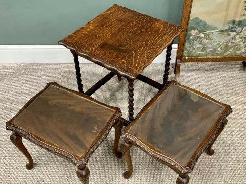 OCCASIONAL FURNITURE ASSORTMENT to include a nest of three, 56cms H, 57cms W, 43cms D the tallest & other side tables, firescreen 92cms H,59cms W and a gilt framed mirror 127cms H, 35cms W