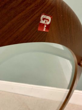 G-PLAN RED LABEL MID-CENTURY GLASS TOP COFFEE TABLE, 46cms H, 84cms Diameter top
