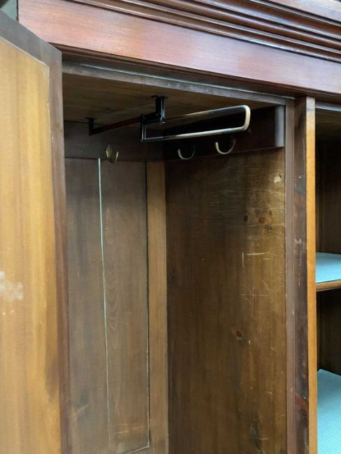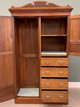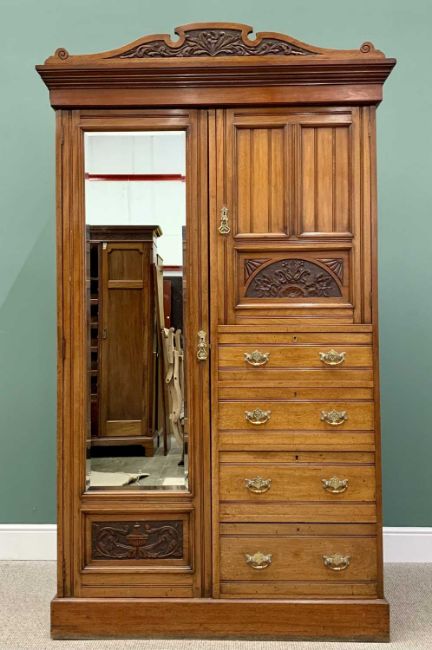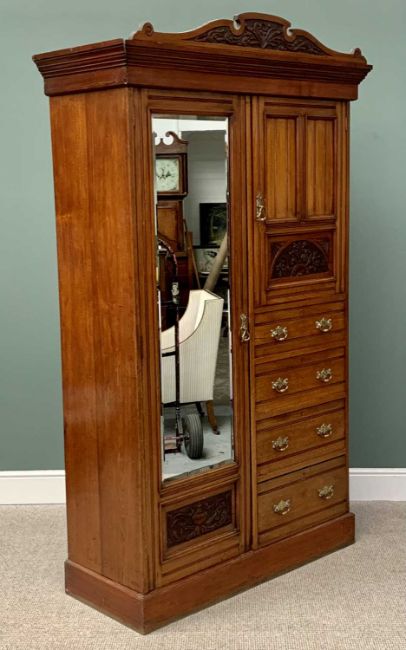 EDWARDIAN MAHOGANY WARDROBE & WALNUT SINGLE BED comprising combination full-mirror wardrobe, 22cms H, 118cms W, 49cms together with a D & A sprung-bed, 116cms H, 201cms L, 91cms W