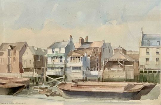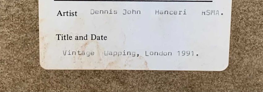DENNIS JOHN HANCERI RSMA (1928-2011) watercolour - titled 'Vintage Wapping, London 1991', signed, 33 x 49cms