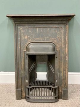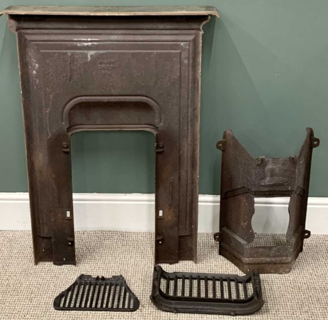VICTORIAN CAST IRON FIREPLACE INSERT with basket and grate, 92cms H, 74cms W, 14cms D