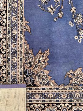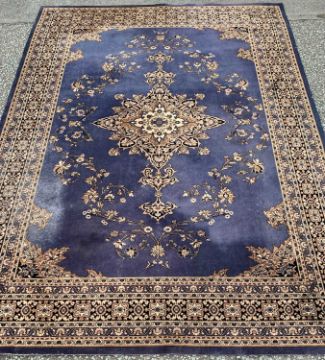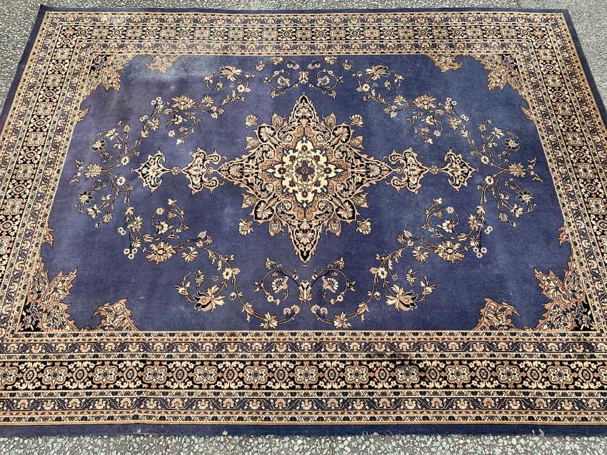 GOOD PERSIAN WOOLEN RUG with blue ground interior, multi bordered with central diamond pattern, 368 x 27cms
