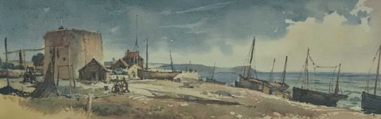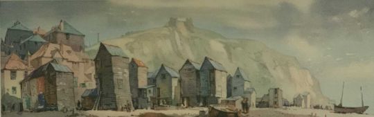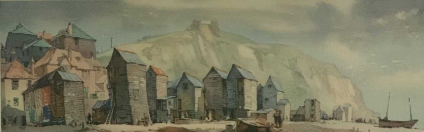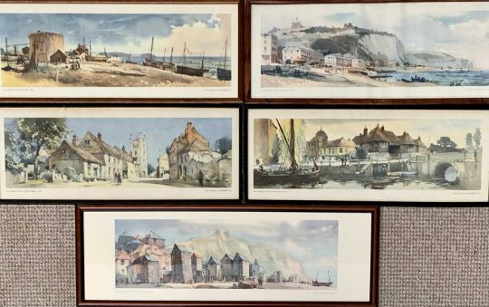 JACK MERRIOTT RI series of five prints - vintage English coastal scenes, all 58.5 x 19cms