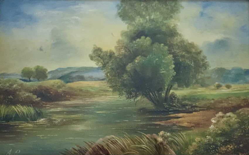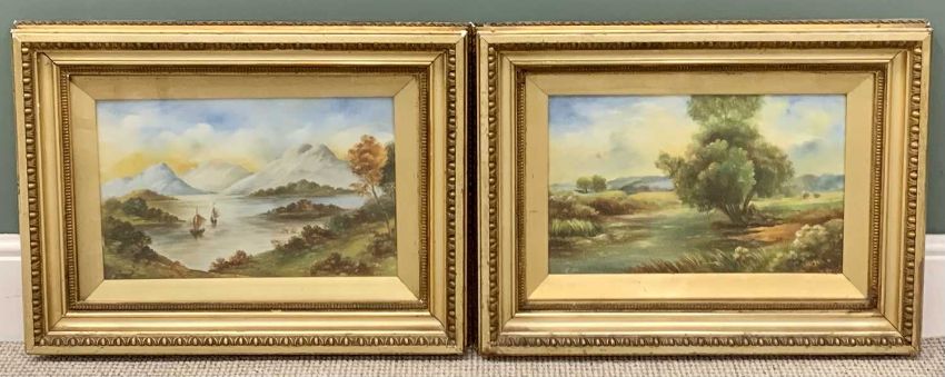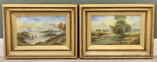 BRITISH SCHOOL (INITIALLED 'A P') a pair of early 20th Century watercolours - landscapes, 27 x 43.5cms, in good gilt frames