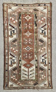 EASTERN WOOLLEN RUG with multicoloured and multibordered diamond and arrow pattern throughout, 192 x 109cms