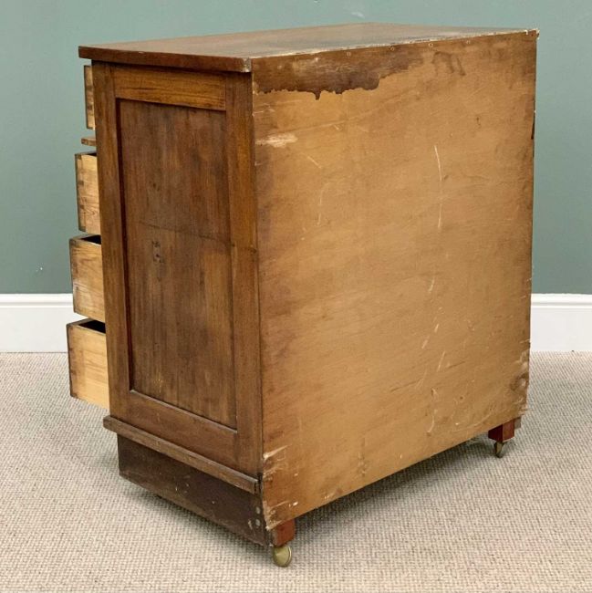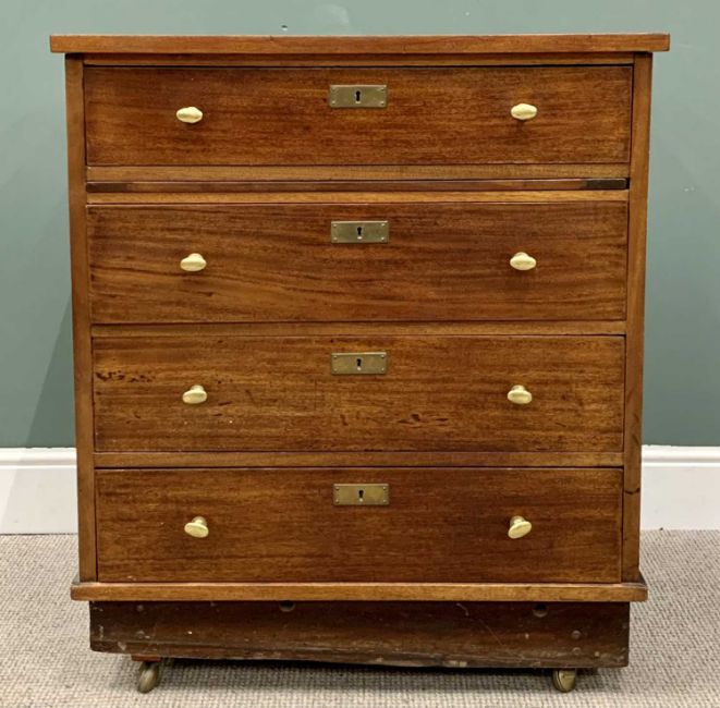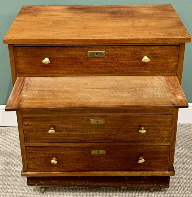 MID-CENTURY FOUR DRAWER CHEST with central brushing slide, on castors, 97cms H, 84cms W, 51cms D