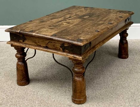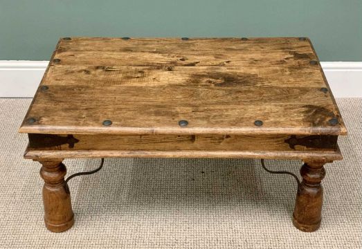 MODERN HARDWOOD & IRON MOUNTED COFFEE TABLE 41cms H, 90cms W, 60cms D