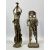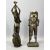 THE LEONARDO COLLECTION: BRONZE EFFECT COMPOSITE FIGURE OF A SEMI-NUDE FEMALE, 47cms H, another bronze effect composite figure of a boy on stilts, 38cms H, and two Leonardo Collection porcelain dolls, fully clothed with original boxes