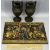 MARCUS DESIGNS COMPOSITE RECTANGULAR RELIEF PLAQUE, the Battle of Evesham 4 August 1265, Prince Edward Earl Warren, 24.5 x 40.5cms, spelter two-handled footed urn vases, a pair, the bodies moulded in relief with classical figures, red wax seal marks to bases, 25cms H