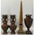 JAPANESE BRONZE VASES, a pair, Meiji period, patinated brown, with baluster bodies, slender necks and flared rims, applied side handles and decoration of flowers and birds, 25.5cms H, reproduction bronze effect urn with Greek key design on a square base, 26cms H, reproduction metal obelisk, 45cms H