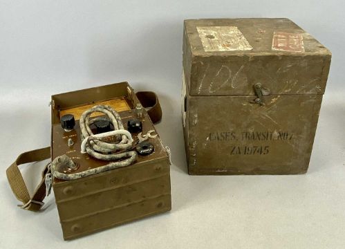 WAVEMETER CLASS D NO. 1 MARK 2 MILITARY RADIO IN METAL CASE, 2 x wooden cased military compass and 2 x vintage 'The Featherwate' aluminium shooting sticks