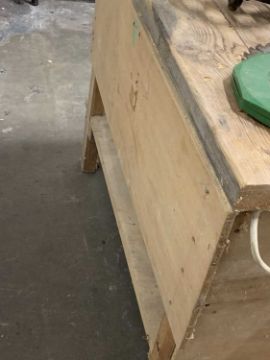 WOODWORKERS BENCH / STATION with Gryphon motorised cut off saw, plane and lathe combination attached, with associated accessories, E/T, 119cms overall H, 130cms approx. overall L, 96cms overall W