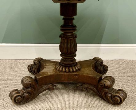 ANTIQUE & REPRODUCTION FURNITURE PARCEL x 3, to include a Victorian mahogany fold over tea table on a carved column and quatrefoil base with knurled carved feet, 74cms H, 92cms W, 45cms D (closed), 90cms (open), reproduction sofa table in mahogany, with brass fittings and feet, 77cms H, 93cms W (closed), 150cms (fully open), 61cms D and an adjustable brass fender with twist detail bars on urn supports, 16cms H, 134cms W, 43cms D (exterior measurements)