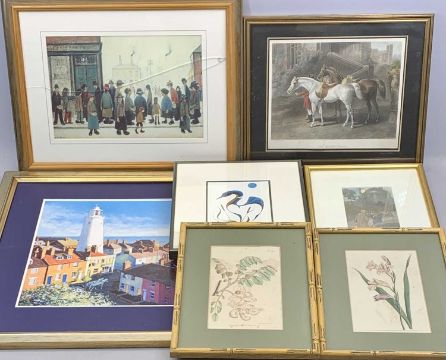 VARIOUS COLOUR PRINTS including 4 x Sutherland shooting engravings, Roy Perry golfing prints titled 'Seven Iron', Garrard limited edition (117/850) colour print - 'Southwald Seasons - Spring', and various others