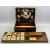 VICTORIAN COROMANDEL TRINKET BOX of rectangular serpentine form, the hinged cover inlaid to the underside with central elephant, with foliate surround and eagles to the corners, revealing a lift out tray with 11 compartments all having inlaid lids, 15.5cms H, 38.5cms W, 25.5cms D