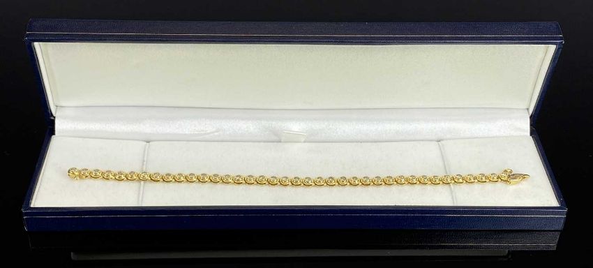 18CT GOLD DIAMOND SET TENNIS BRACELET, having 38 0.05-0.06ct diamonds, estimated total 2cts, stamp 750 with C J W Sheffield sponsor mark, 19cms L, 14.98g with copy of insurance appraisal dated March 2013