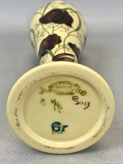 MOORCROFT CONTEMPORARY SLENDER VASE 'CHOCOLATE COSMOS' PATTERN, impressed marks and dated 2013, 32cms H