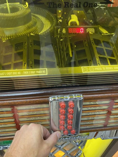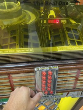 THE FILM & MUSIC CLUB HOUSE: WURLITZER JUKEBOX REPRODUCTION COMPACT DISK PLAYER, model OMTCD-100GB, classical light up style in wood and chrome effect with coin slot and push button selector, along with a boxed quantity of various compact disks, mixed artist and compilations, 153cms H, 81cms W, 68cms max D E/TProvenance: private collection DevonPlease Note: this lot is located at our north Wales auction house where it can be viewed by appointment