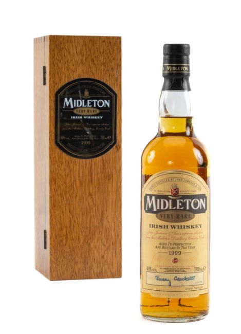 THE WHISKY CLUB HOUSE: MIDLETON VERY RARE IRISH WHISKEY bottled 1999 40%, original wooden presentation box complete with invitation card and COA, bottle number 015290, 70clProvenace: private collection Vale of Glamorgan, consigned via our Cardiff officeAuctioneers notes: rare blend of whiskies produced by Jameson's Master Distiller, Barry Crockett and released in limited numbers each year. Each bottle numbered and signedComments: excellent level, seal, labels and presentation box