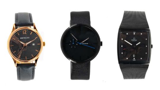THE WRISTWATCH CLUB HOUSE: THREE GENT'S FASHION WATCHES, comprising Greyhours DLC coated 'Essential' wristwatch, 40mm diam., Obaku bracelet watch, 34mm diam, and Henley wristwatch, 39mm diam., all with quartz movements, calendar apertures and boxes (3)Provenance: private collection CeredigionComments: good overall condition.