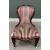VICTORIAN MAHOGANY SPOON BACK SALON CHAIR with classical stripe fabric re-upholstery, on turned front supports and white pot castors, 82.5cms H, 57cms W, 49cms seat D
