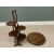 FOUR TRAY DOUBLE-SIDED MAHOGANY CAKE STAND & LATER TEAK LAZY SUSAN, the cake stand having dished circular trays with boxwood stringing detail, 77cms H, 26.5cms W, 39cms max. D, the lazy Susan 50cms diam.