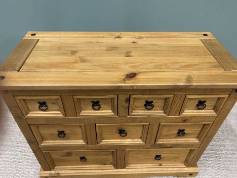 PLUS LOTS 17 & 18 - MODERN MEXICAN PINE MULTI-DRAWER CHEST, of nine opening drawers, 83cms H, 102cms W, 46cms D