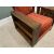 ARTS & CRAFTS AND ART DECO VINTAGE OAK RECLINING ARMCHAIRS x 2, the first having button back upholstery in blue with push back action recliner, having flat shaped arm rests, with pierced and plain slatted supports, on block and waisted form front supports, 96cms H, 69cms W, 80cms D, the later example Heal's style in red upholstery, metamorphic construction to include a ratchet fall back rest, single flap drop leaf with gateleg support to one side and two-shelf open bookcase to the other, the wide arm displaying exposed dovetails and fluted front detail, 71cms H, 74cms W, 86cms D