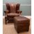 GEORGIAN STYLE LEATHER WINGBACK ARMCHAIR, brown leather, studded arms, matching ottoman, 109h x 87w x 83cms d (2)