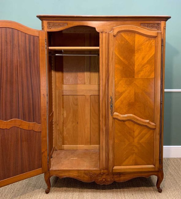 FRENCH PROVINCIAL CHESTNUT ARMOIRE, foliate carved spandrels, quarter veneered naelled doors, shell carved apron, 185h x 122w x 52cms dProvenance: collection of the Late Dai Evans, former Director of Picton Castle and former curator of Petworth HouseComments: later added shelf with hanging pole, minor scratches