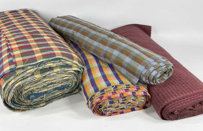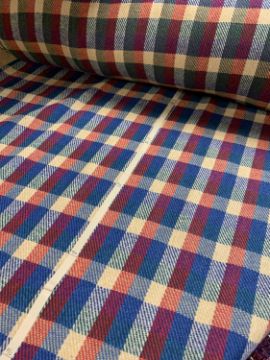 FOUR BOLTS OF CHECK / PLAID WOOL FABRIC (4)Provenance: private collection SwanseaComments: moth damage found to the smaller blue/green/brown plaid bolt, please inspect the images, the other bolts are free of moth damage