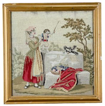 ASSORTED COLLECTION OF NEEDLEWORK & BERLIN WOOLWORK, inc. two samplers, one by Jane Thomas dated August 12th 1837, another by Elizabeth Price, undated; and other biblical and portrait representations (11)Provenance: collection of the Late Dai Evans, former Director of Picton Castle and former curator of Petworth HousePLEASE NOTE: THE C WILKINS SAMPLER PICTURED IS NOT INCLUDED IN THIS LOT
