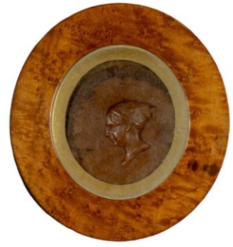 EARLY 19TH C. WAX PORTRAIT MEDALLION - profile head of a Roman girl, probably a souvenir from the Grand Tour, 13.5 x 12cms (oval)
