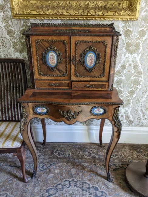 19TH C. PORCELAIN & GILT BRONZE MOUNTED BONHEUR DU JOUR, kingwood and rosewood with applied Sevres-style porcelain plaques, fitted drawer interior, cabriole legs, 125.5h x 73w x 57cms dProvenance: Ufford Place, Suffolk; Pembrokeshire Country House.Comments: good overall with minor wear.