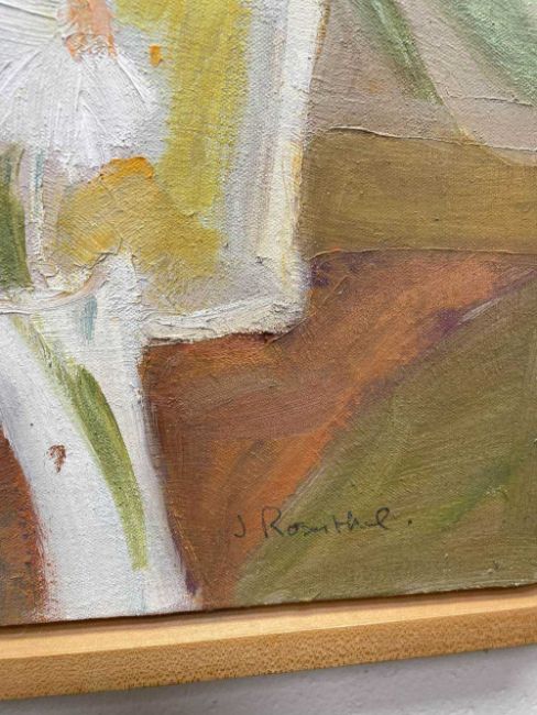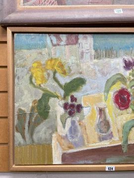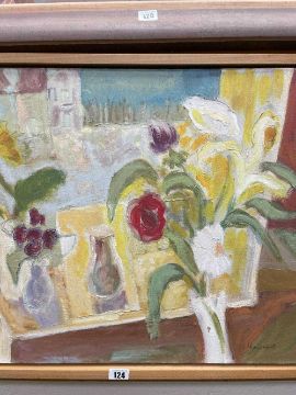 ‡ JUDITH ROSENTHAL, oil on canvas - View From Window, still life of flowers and jugs, signed, titled on Martin Tinney label verso, 46 x 65cmProvenance: private collection south WalesComments: framed