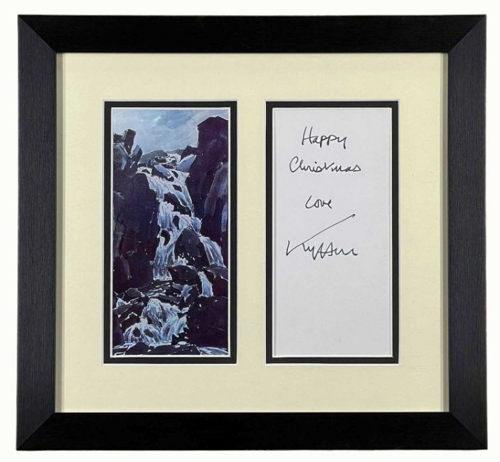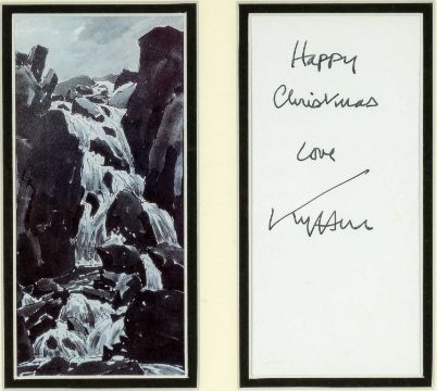 ‡ SIR KYFFIN WILLIAMS, autograph and facsimile print - Ogwen Falls, framed with signed 'Happy Christmas' dedication, print 20 x 9.5cmsProvenance: private collection CardiffComments: framed ready to hang