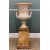 Comments: generally rusted, presumed original paint, square plinth base to urn loose and with missing section in corner, label attached