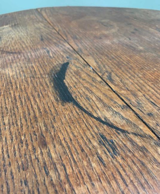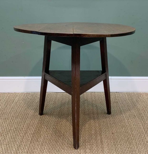 19TH CENTURY OAK TWO TIERED CRICKET TABLE, 75h x 83cms diam.Provenance: private collection Mid GlamorganComments: stains to top, stretcher missing from bottom tier
