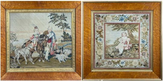 Comments: latter woolwork a little faded, watercolour - laid down, in tinted mount, unframed