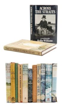ASSORTED COLLECTIBLE TITLES, including BAGNOLD (ENID), 'Letters to Frank Harris and Other Friends', ed. by R.P. Lister, T, limited edition no. 94/400 copies, signed by the author, clothbound, in original slipcase, 8vo, The Whittington Press, Gloucestershire, 1980; MORRIS (WILLIAM), 'An Address Delivered by William Morris...Prizes to Students...Birmingham Municipal School of Art.... Feb. 21 1894', quarter cloth binding over paper boards, 8vo, London, Chiswick Press, 1898, with insert from the Chiswick Press explaining their ownership of the type the address was printed in (staining to end pages, foxing to insert, minor foxing to page edges); THESIGER (WILFRED), The Marsh Arabs. 1st edition, clothbound, gilt lettering on spine, in original dust wrapper, 8vo, London, Longmans, Green and Co. Ltd, 1964, (spine bumped) together with Arabian Sands, 1st edition, clothbound, gilt lettering on spine, in original dust wrapper, in plastic protective sleeve, 8vo, London, Longmans, Green and Co. Ltd. 1959 (spine minorly worn, both inserted with newspaper cuttings about Wilfred Thesiger); TOMLINSON (H.M), The Sea and the Jungle, limited edition no. 195/515, signed by author, clothbound, gilt lettering to spine, 8vo, London, The Camelot Press, 1930; MOOREHEAD (ALAN), 12 ASSORTED WORKS, comprising 'No Room in the Ark', Hamish Hamilton, 1959, clothbound with lettering to spine, in original dust wrapper, 8vo, 'Rum Jungle', first edition, London, Hamish Hamilton, 1953, clothbound, with gilt lettering to spine, with original dust wrapper, 8vo, 'The Villa Diana', first edition, London, Hamish Hamilton, 1951, clothbound, with gilt lettering to spine, 8vo, 'The Traitors: The Double Life of Fuchs Pontecorvo and Nunn May', first edition, London, Hamish Hamilton, 1952, clothbound, gilt lettering to spine, in original dust wrapper, 8vo, 'The White Nile', first edition, London, Hamish Hamilton, 1960, clothbound, with original dust wrapper, 8vo, 'Cooper's Creek', first edition, London, Hamish Hamilton, 1963, paper half bound, with original dust wrapper, 8vo, 'The Blue Nile', first edition, London, Hamish Hamilton, 1962, paperbound, gilt lettering to spine, in original dust wrapper, 8vo, 'A Summer Night', first edition, London, Hamish Hamilton, 1954, paperbound, in original dust wrapper, 12mo, 'The Fatal Impact', first edition, London, Hamish Hamilton, 1966, paperbound, gilt lettering to spine, 'Montgomery', first edition, London, Hamish Hamilton, 1946, clothbound, 8vo, 'The End in Africa', first edition, London, Hamish Hamilton, 1943, clothbound, 8vo, and CASSON (HUGH), Diary. Paperbound, gilt lettering to spine, in original dust wrapper, with drawing and two hand signed letters from Casson, dated '82 and '83 respectively, 8vo, London, Macmillan, 1981; together with WILLIAMS (KYFFIN) Across the Straits: An Autobiography, signed by author, clothbound, gilt lettering to spine, 8vo. London, Duckworth, 1973 ('No Room in the Ark' dust wrapper bumped with minor tears to bottom, 'Rum Jungle' dust wrapper worn, 'The Traitors' dust wrapper worn and ripped top and bottom, 'The White Nile' dust wrapper bumped, small tear to top front, 'Cooper's Creek' dust wrapper worn with minor tears, spine faded, 'The Blue Nile' dust wrapper bumped, minor foxing, ' A Summer Night' dust jacket worn with minor tear to front, 'Across the Straits' cloth cover with some mould stains) (qty)Provenance: private collection south Wales.