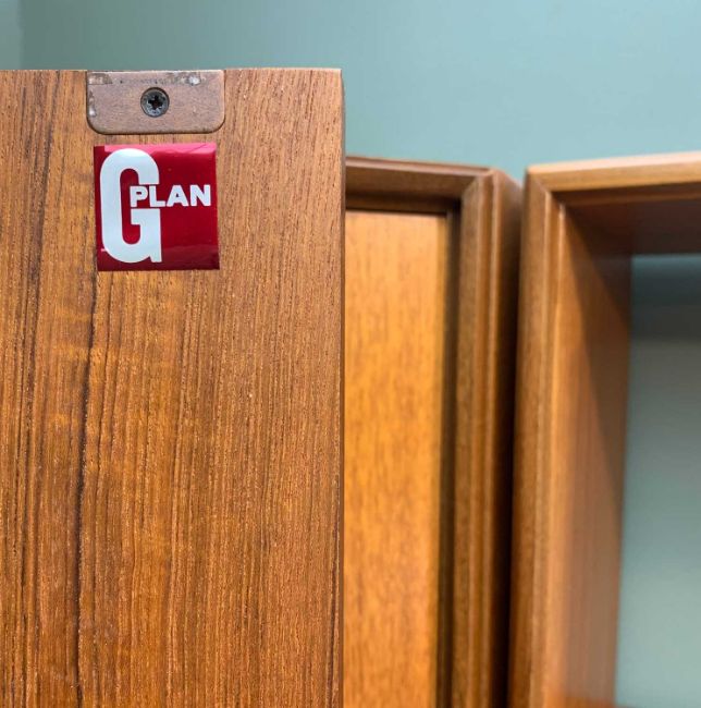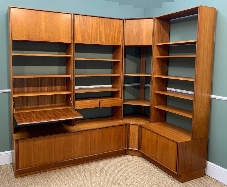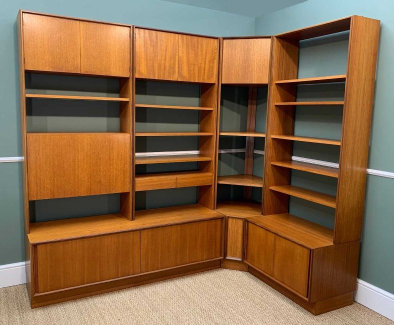 LARGE MODULAR MID-CENTURY G-PLAN CORNER DISPLAY UNIT, 198h x 219w x 133cms dProvenance: private collection mid-GlamorganComments: minor scratches and stains