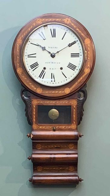 AMERICAN DROP DIAL WALL CLOCK, Jerome, New Haven, USA, two-train movement, the dial with Roman numeralsProvenance: private collection SwanseaComments: with pendulum and winder, losses and wear overall