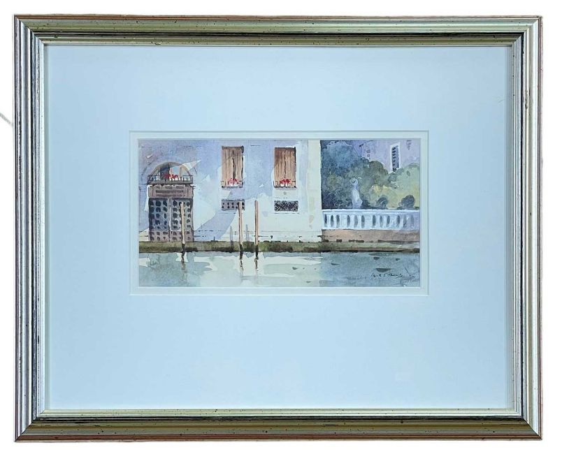 ‡ GARETH THOMAS watercolour - Venice, entitled verso 'Shadows, Grand Canal' on Attic Gallery label, signed, 11.5 x 22cmsProvenance: private collection, consigned via our Carmarthen officeComments: framed and glazed, ready to hang