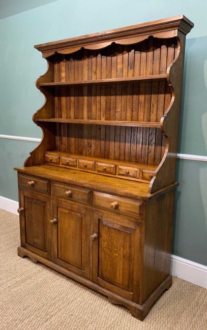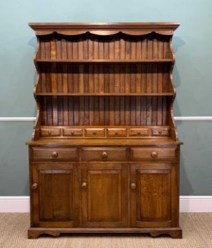 SMALL SOLID OAK DRESSER, two shelves with six spices drawers below, three frieze drawers above three cupboard doors, 182h x 127.5w x 45.5cms dProvenance: consigned via West Wales