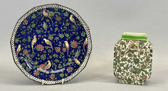 COLLECTION OF ROYAL DOULTON CHINTZ CHINA, to include hexagonal vases, a pair, 20cms H, dessert set, various plates and other items, together with a Royal Doulton stoneware vase, incised decoration of fruit and berries, 24cms HProvenance: private collection Conwy