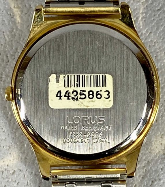 GENTS LORUS WATER RESIST GOLD TONE STAINLESS STEEL BRACELET WRISTWATCH, white dial set with gilt baton markers and date window, ref. PC32-X004, 35mm case diam., in good condition, appears working when listed, with original plastic case and instructionsProvenance: private collection Conwy