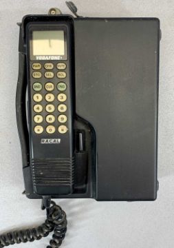 VINTAGE VODAFONE TYPE EF-6152EB CLASS 2 PORTABLE TELEPHONE, serial no. 41872, and a Sharp PC 4521 20MB hard disk computer in carry caseProvenance: private collection Conwy